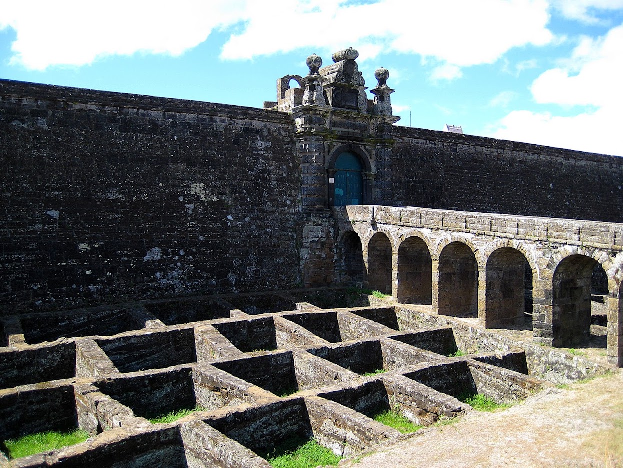 Sobre o istmo do Monte Brasil, foi mandado construir por Filipe I a maior fortaleza erigida em Portugal durante o domínio espanhol: a Fortaleza de São João Baptista. Esta fortaleza foi usada para defender a cidade dos ataques dos piratas e corsários que tentavam apoderar-se das riquezas trazidas da Índia, sendo actualmente usada como base militar. O local é visitável, embora com algumas restrições de horários. Deste ponto, aviste do lado oposto o Forte de São Sebastião, edificado no séc. XVI no reinado do rei com o mesmo nome. Actualmente convertido em pousada, esta foi a primeira grande fortificação marítima construída na cidade.